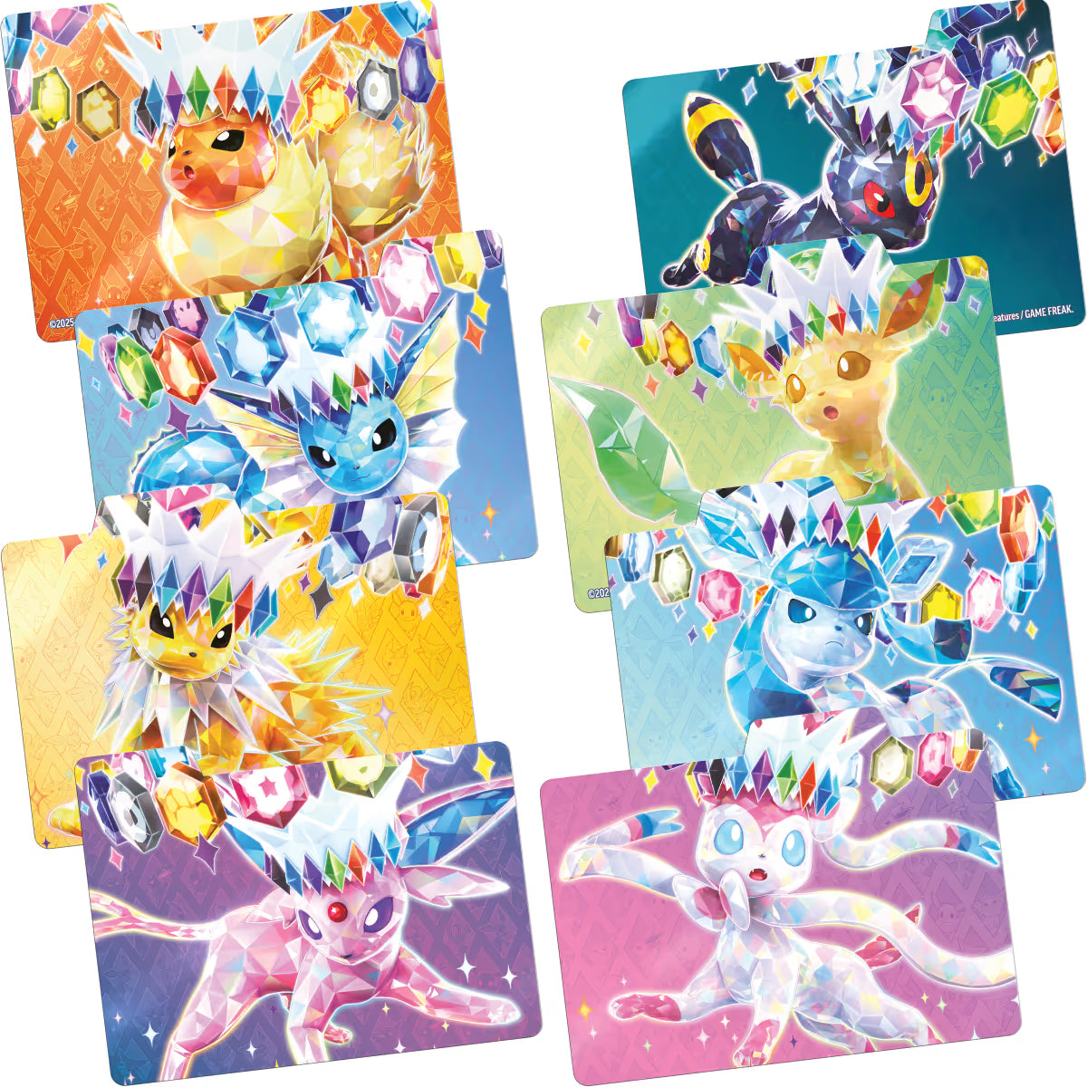 – Una carta promozionale olografica con un logo speciale a caso su nove di Eevee-ex, Vaporeon-ex, Jolteon-ex, Flareon-ex, Espeon-ex, Umbreon-ex, Leafeon-ex, Glaceon-ex o Sylveon-ex